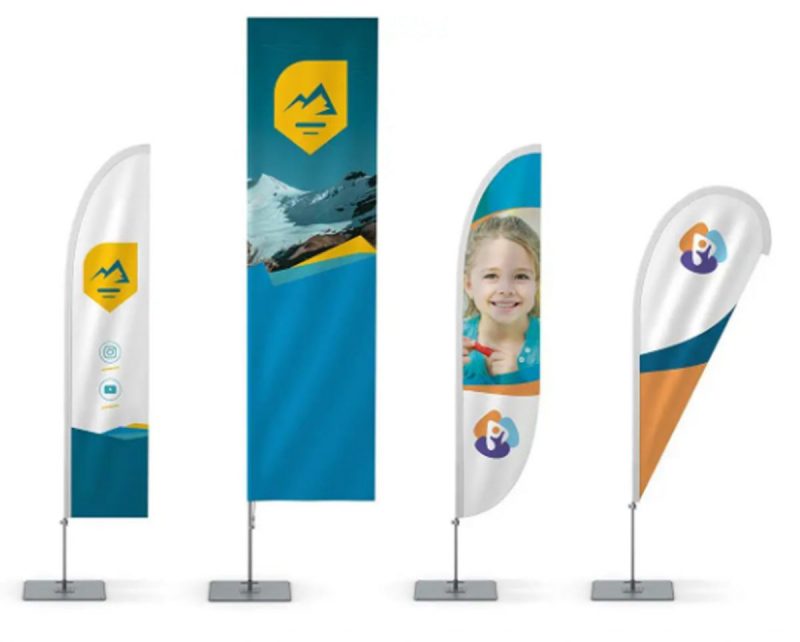 Ofrecemos nuestras banderas en forma de gotas, de tipo recto, convexo o con brazo horizontal. Elija el expositor publicitario que mejor cumpla con sus requisitos.