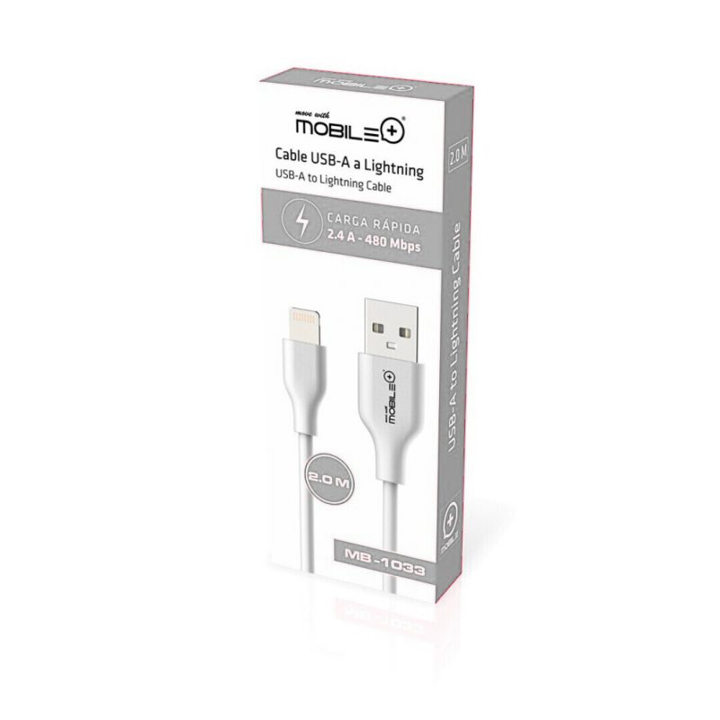 | nota2 | Cable de datos y carga compatible con iPhone. Cable Lightning/USB. 1.5 metro o de 2.0m longitud . Carga rápida 2.4A y transmisión de datos estable. MOBILE+ MB-1032 / MB-1033 |