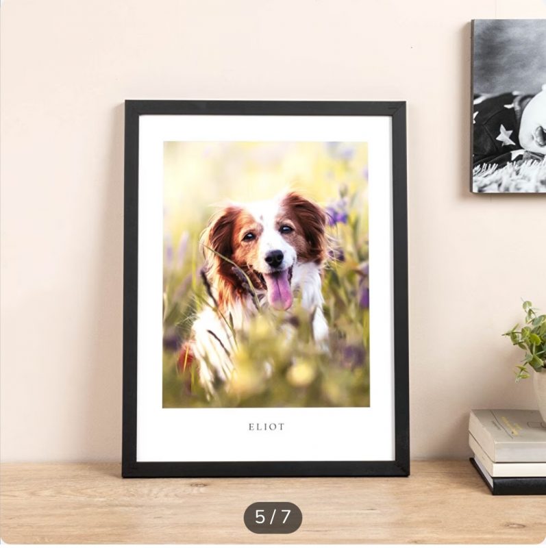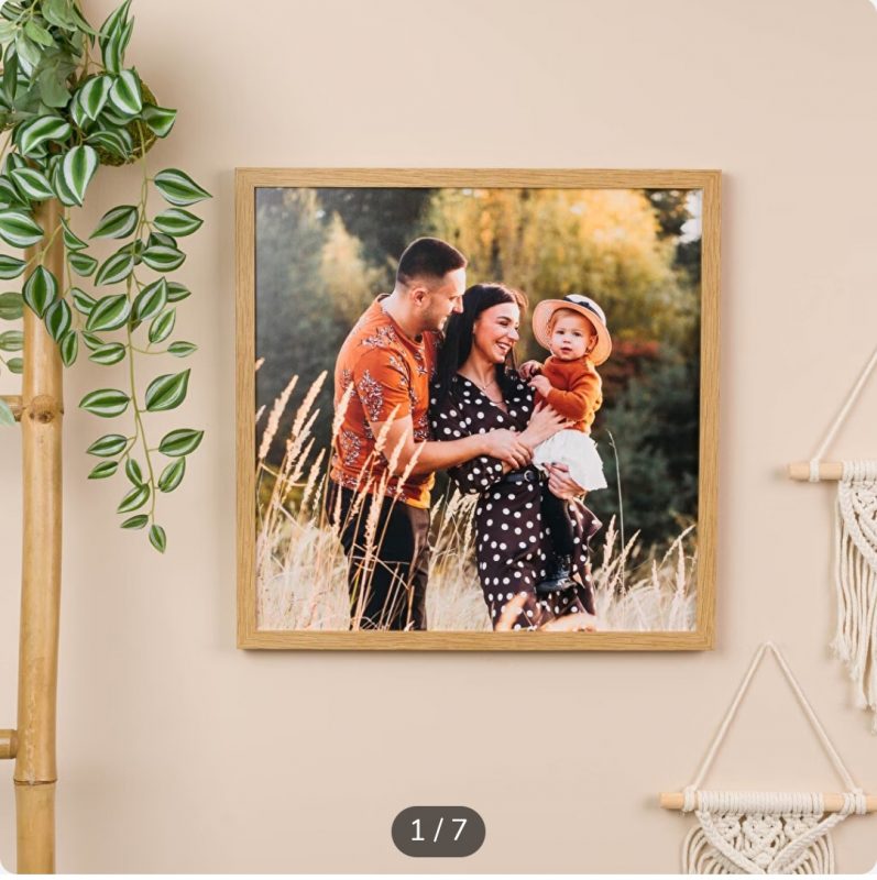 Cuadros personalizados con la fotografía o imagen que quieras, la cual enmarcamos con un elegante marco de madera. Puedes elegir el color del marco: negro, blanco o natural (marrón). El cuadro incluye soporte para colgar.