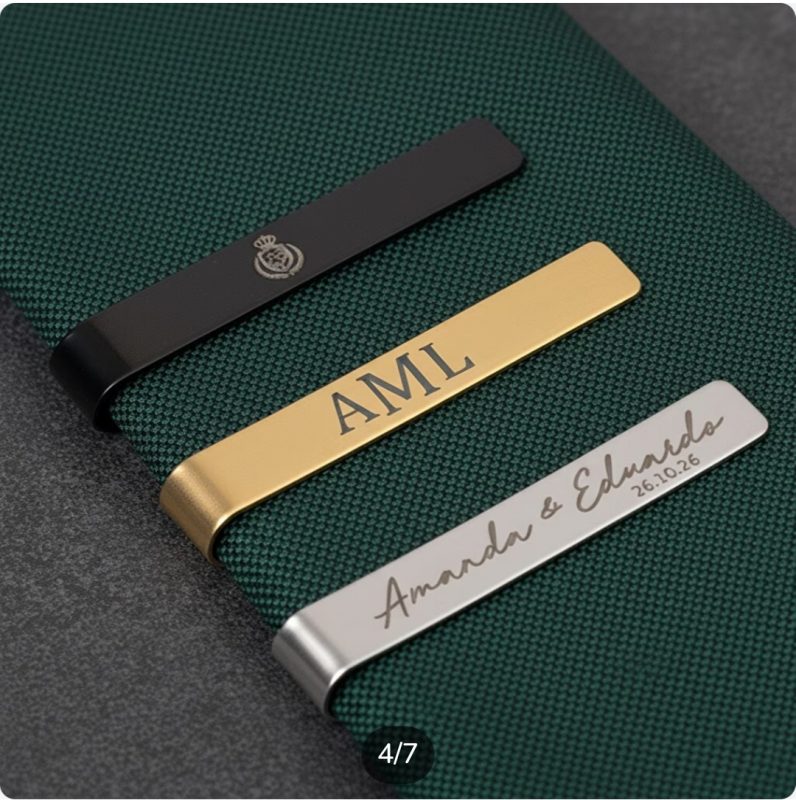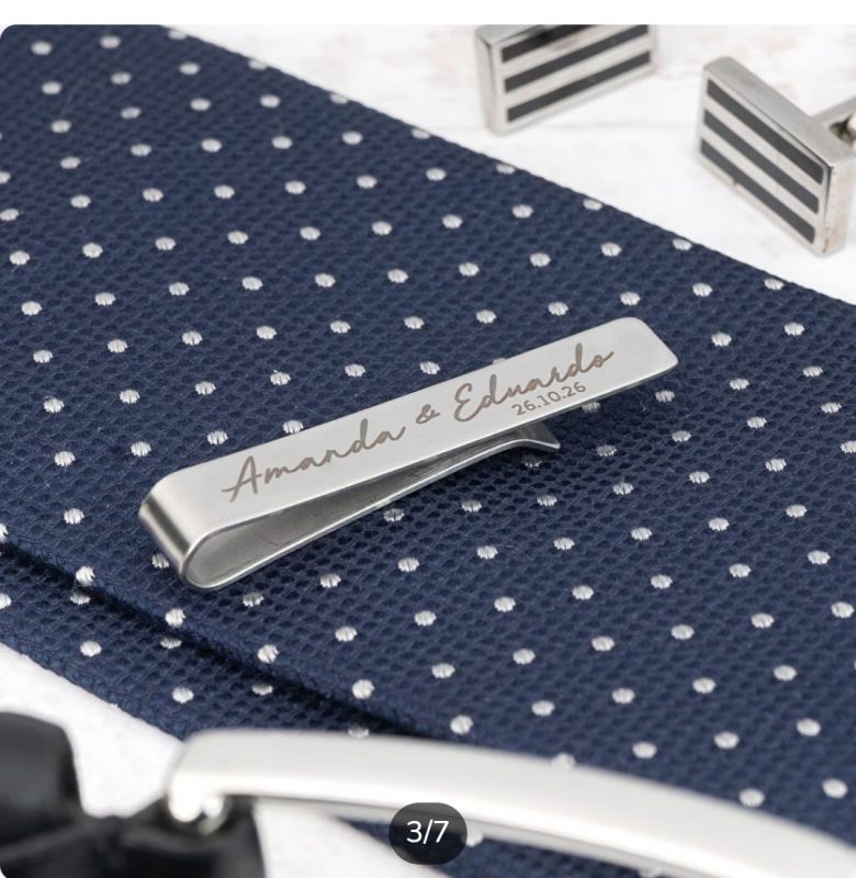 El pisacorbatas personalizado es un símbolo de distinción moderna, un accesorio que recupera el encanto clásico del vestir elegante y lo adapta a las necesidades del hombre actual. Fabricado en un material de alta calidad, este accesorio combina ligereza, resistencia y una estética que encaja con cualquier estilo de traje. Para quienes desean aportar un toque único a su indumentaria —ya sea para el trabajo, para una boda, un bautizo o cualquier evento donde la etiqueta es esencial— este pasador de corbata se presenta como un complemento imprescindible. Su presencia discreta pero firme sostiene la corbata en su sitio, aportando orden, comodidad y un aire de sofisticación.