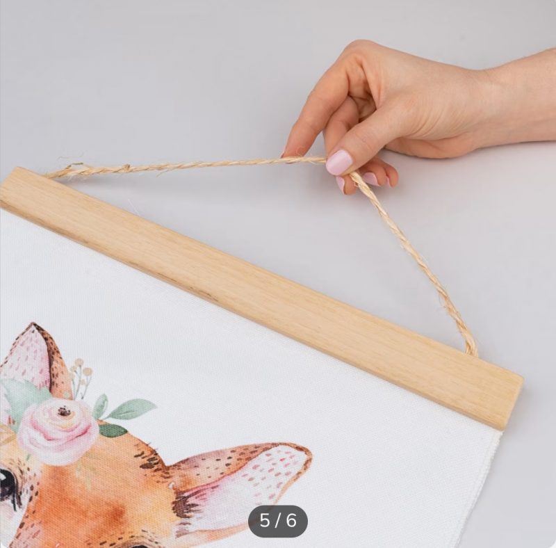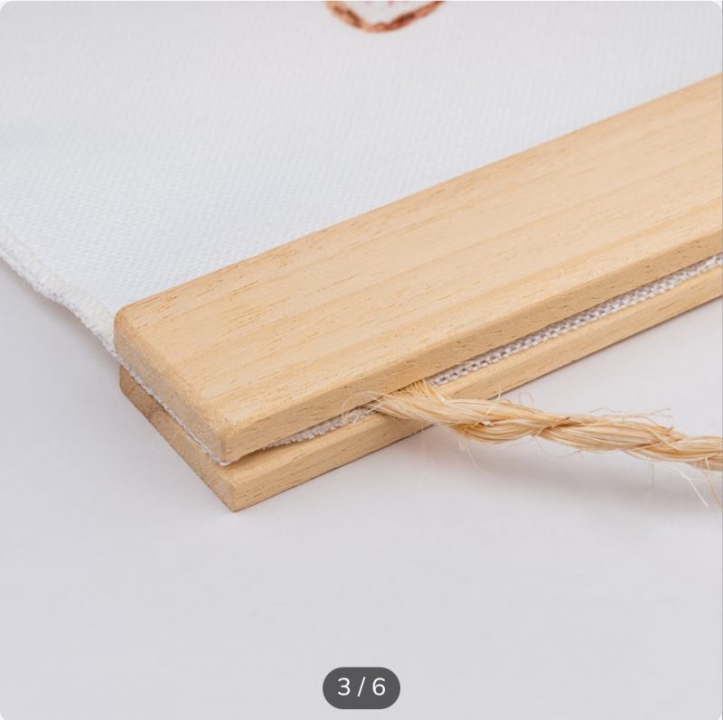Este producto decorativo, también llamado poster hanger, tiene dos tiras de madera en la parte superior e inferior, para hacerlo más atractivo visualmente. Y la tira superior tiene una cuerda, para poder colgar en cualquier pared o superficie.