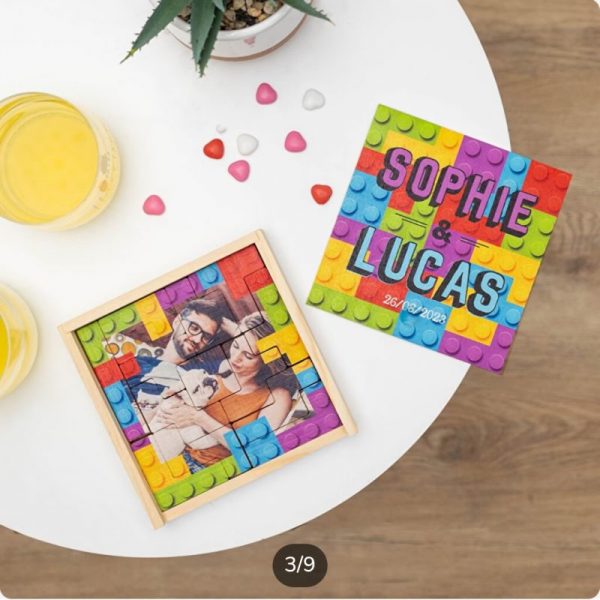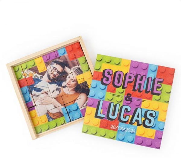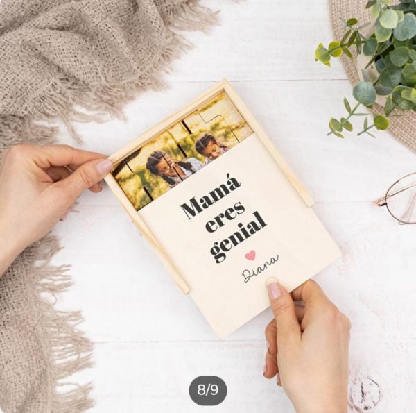 • Se personaliza tanto el puzzle como la caja de madera donde se entrega.