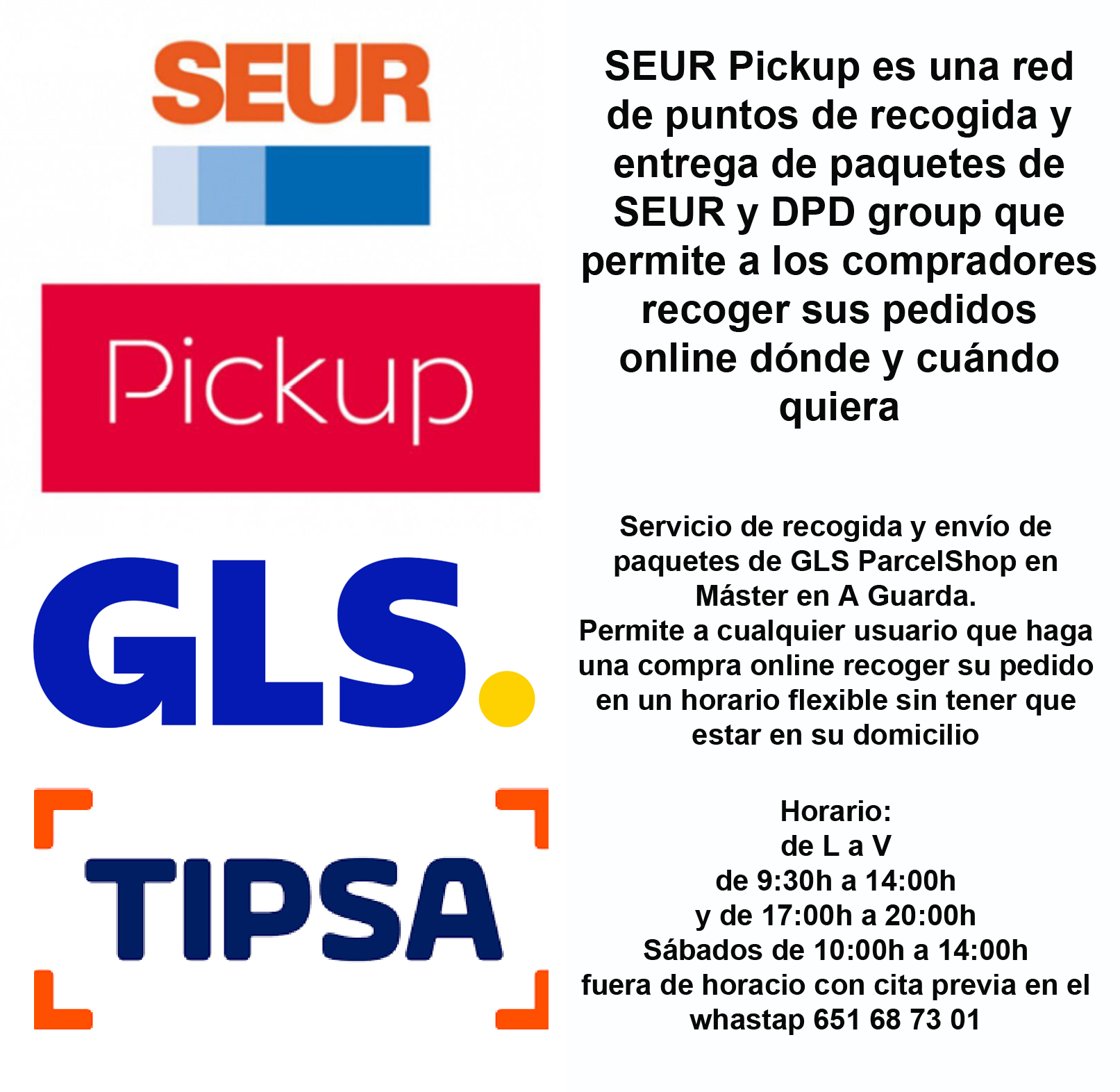 Horario: de L a V: 9:30 a 14:00h. y 17:00 a 20:00h. Sábado: de 10:00 a 14:00h.