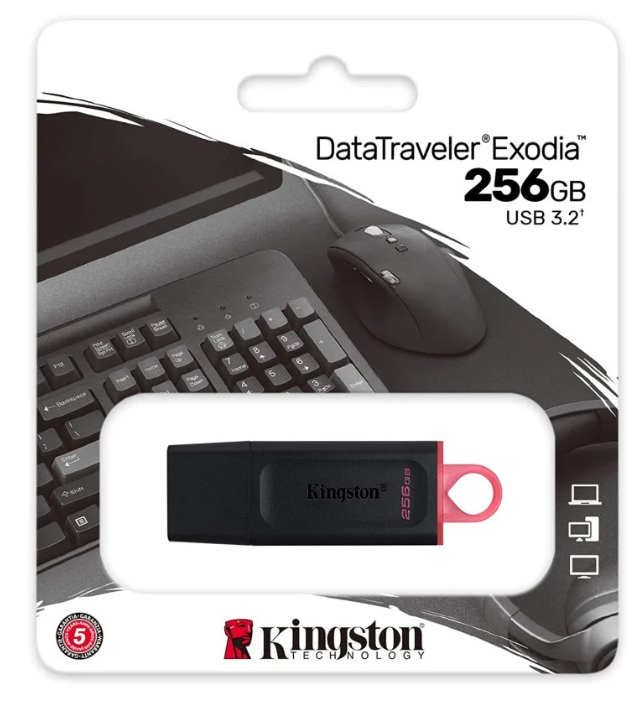 La practicidad del diseño y los modernos y vibrantes colores lo convierten en el compañero ideal para el uso diario en la oficina, en casa, en la escuela y en cualquier lugar que desee llevar sus datos. DT Exodia está disponible con capacidades de hasta 256 GB, con una garantía de cinco años, incluyendo un servicio técnico gratuito junto con la legendaria fiabilidad que siempre caracteriza a todos los productos Kingston.
