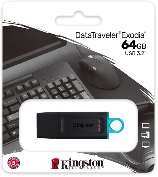 Almacena tus archivos fácilmente con la unidad flash USB Kingston DataTraveler Exodia y disfruta de una solución sencilla y portátil. La tapa mantiene seguro tu conector USB 3.0, mientras que la anilla del extremo te permite enganchar el DT Exodia a un llavero.